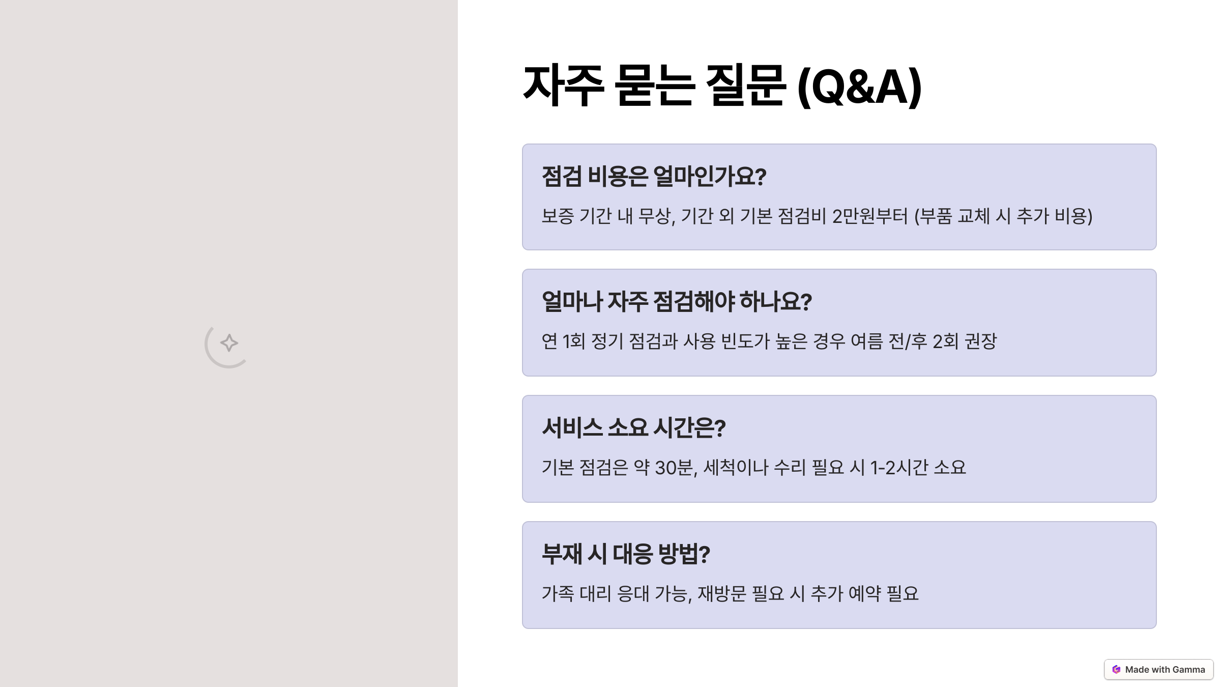 🔧 출장비와 점검비는 무상! 단, 부품 교체 시에는 유상입니다.