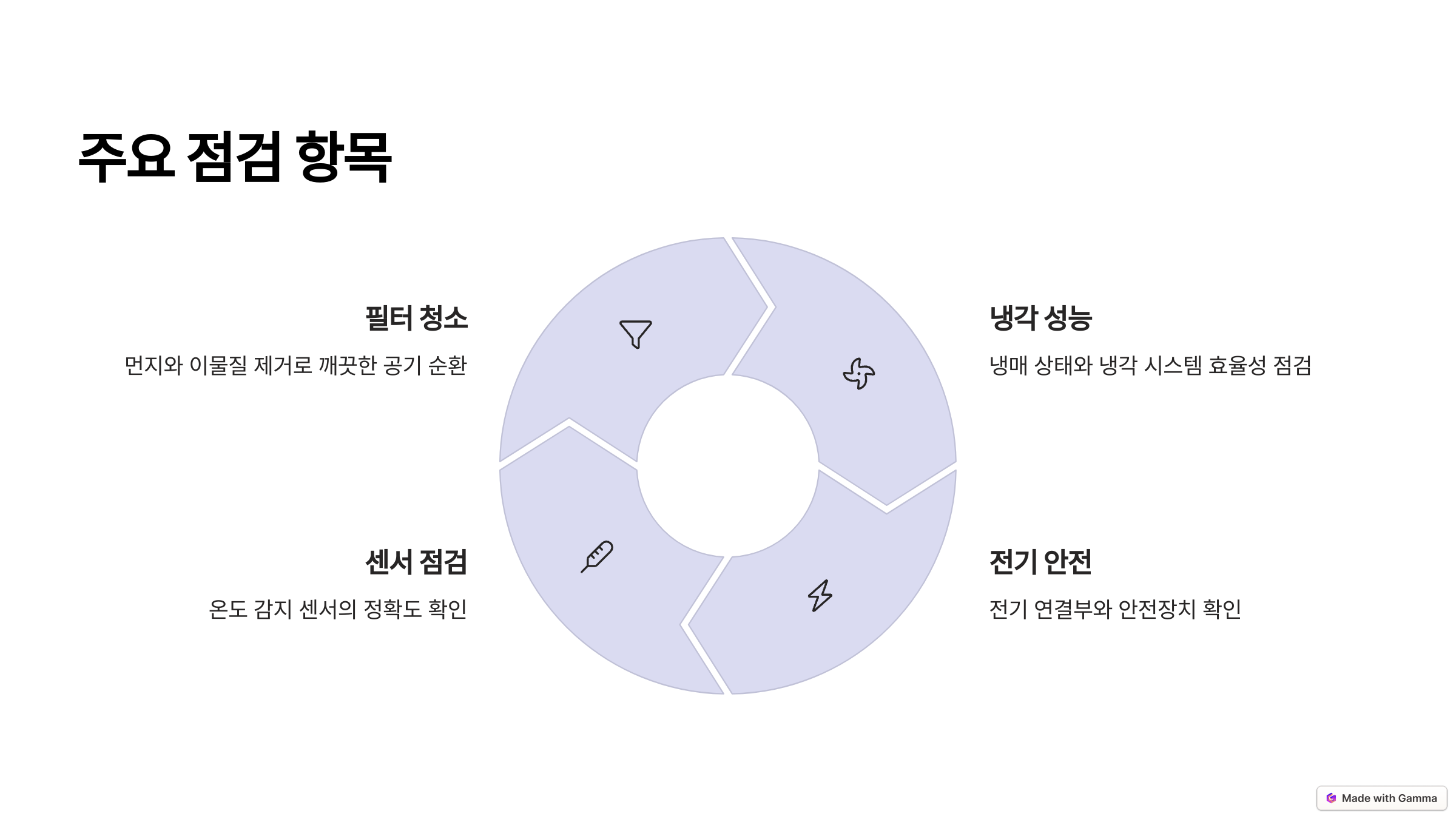 기본적인 자가 점검 외에도 전문 엔지니어가 방문하여 냉방 상태, 부품 이상 여부, 냉매 상태 등을 꼼꼼히 확인해주기 때문에, 여름철 고장 위험을 미리 방지할 수 있죠.